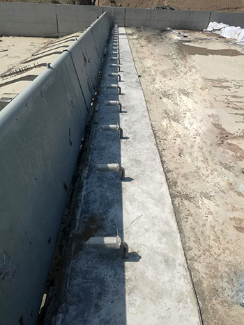 长春市永春河综合治理工程(八一水库大坝至三佳湖景观桥)项目,为了在市区内形成可供观赏的景观与景色,新建合页坝与钢坝2座闸门,项目地点位于长春市区内,为了实现闸门的冬季开启与关闭的需求,2座闸门均采用本公司的新型气泡防冰设备,保证闸门上游处一定范围内的水域不结冰,如下图为蓄水前的气泡防冰设备安装示意图。