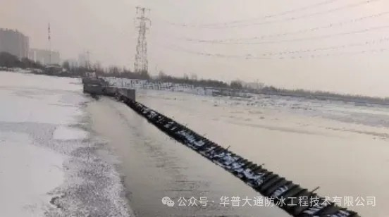 本工程是为内蒙古呼和浩特大黑河7#挡水闸提供防冰设备,闸宽288米,挡水高度3.5m,冬季最低环境温度-32.8℃,历年最大冰厚为0.77m~1.8m。