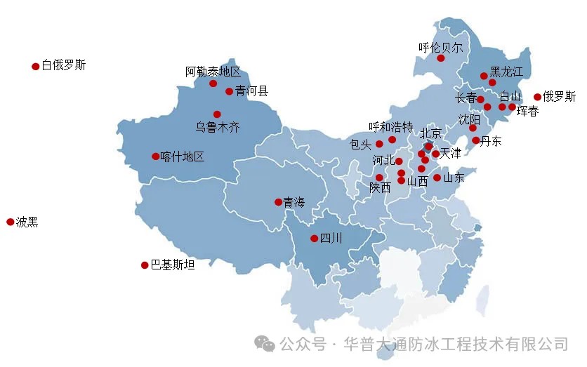 长春华普大通防冰工程技术有限公司专注水利水电工程防冰技术服务近十年,所承建的防冰工程遍布国内外。国内主要在北方寒冷地区,包括东北地区、华北地区、西北地区、西南地区。国外工程已经成功应用在俄罗斯、巴基斯坦、白俄罗斯、波黑等地。