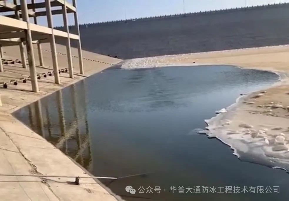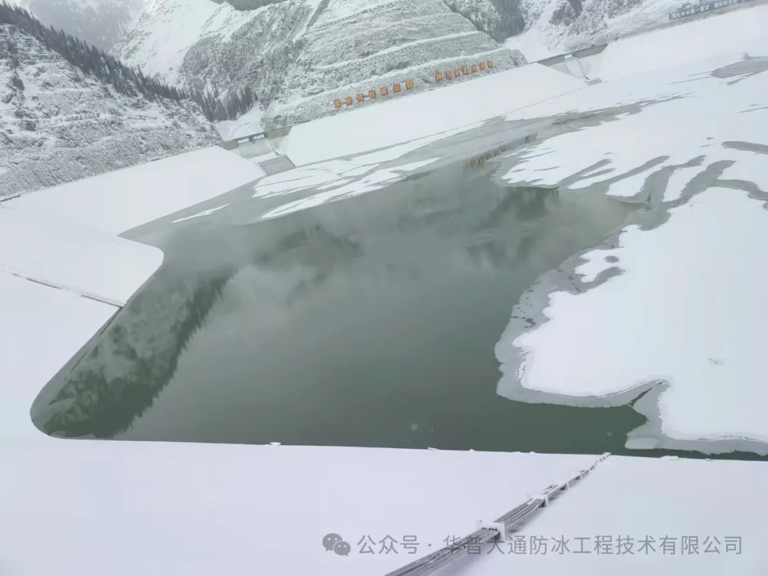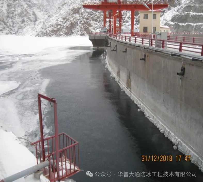 陕西榆林王圪堵水库面板坝防冰设备于2020年冬季开始运行,防冰效果显著。