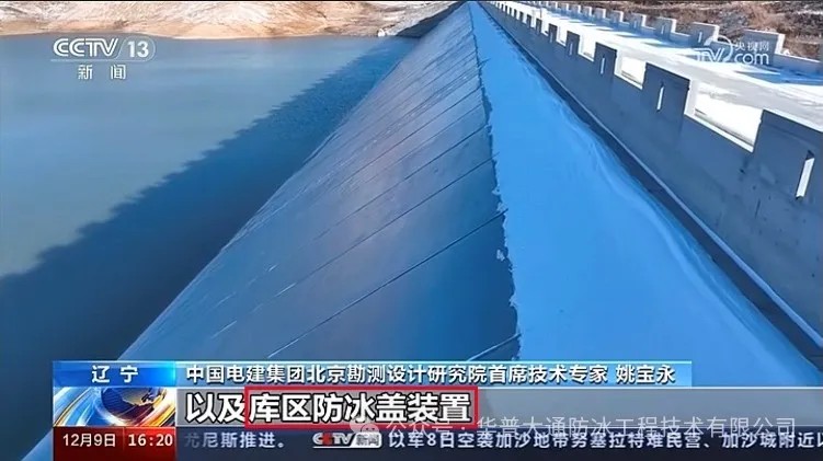 辽宁清原抽水蓄能电站上下库防冰盖封闭设备于2022年12月30日开始试运行,实际消除冰盖面积大于5000㎡,国网新源集团有限公司对我公司新技术、新方法在解决抽水蓄能电站上下库冰盖所取得成效,给予了充分肯定与高度评价,并且在央视的采访中也有所提及。