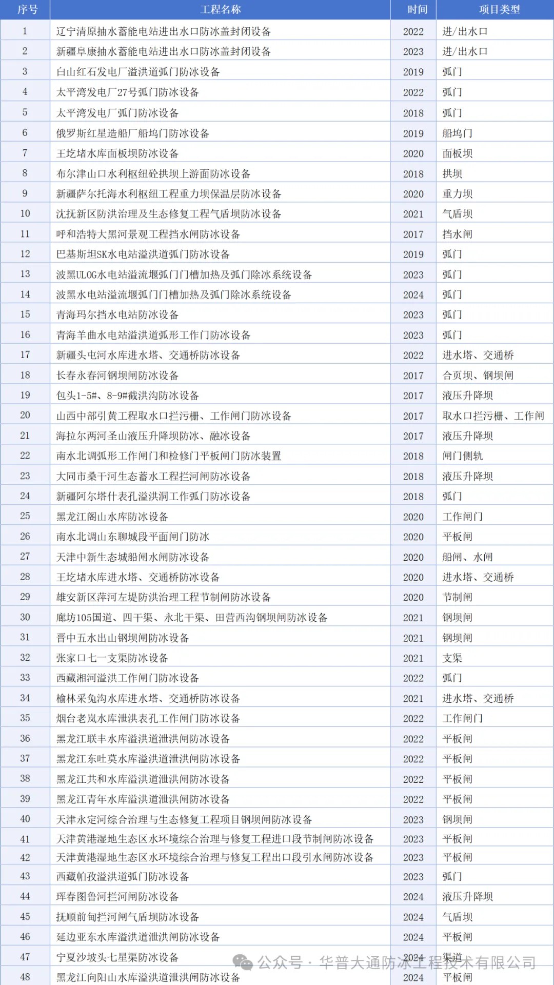 长春华普大通防冰工程技术有限公司自2016年成立起,始终专注于融冰、防冰新技术研发与应用,致力于为全球客户提供优质的防冰技术服务,国内外成功工程案例近50项,利用原创的专利技术解决了包括抽水蓄能电站冰盖、闸门井、重力坝、拱坝、面板堆石坝、进水塔工作桥等诸多冰害难题,消除了寒冷地区水利水电工程冬季安全运行隐患,减少了冰害破坏修复资金,产生了良好的社会效益。